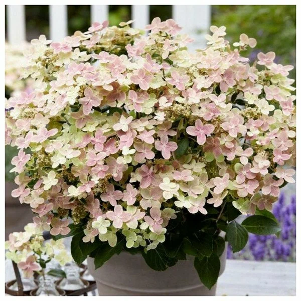Метельчатая гортензия для балконов и террас. Ультра компактный сорт высотой и шириной 50 см. Цветение обильное, в конце июня-сентябре. Цветки очень элегантные, вначале зеленовато-белые, затем становятся лососeво-розовыми и ближе к сентябрю тёмно-розовыми. Листья маленькие, тёмно-зелёные. Место солнечное или полутенистое. Почва влажная, дренированная.