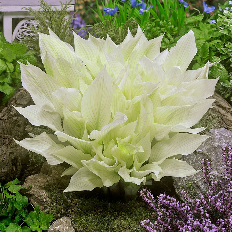 Высота куста 36 см и ширина 60 см. При отрастании весной лист бело-кремовый, позднее зеленеет. Цветки светло-сиреневые.